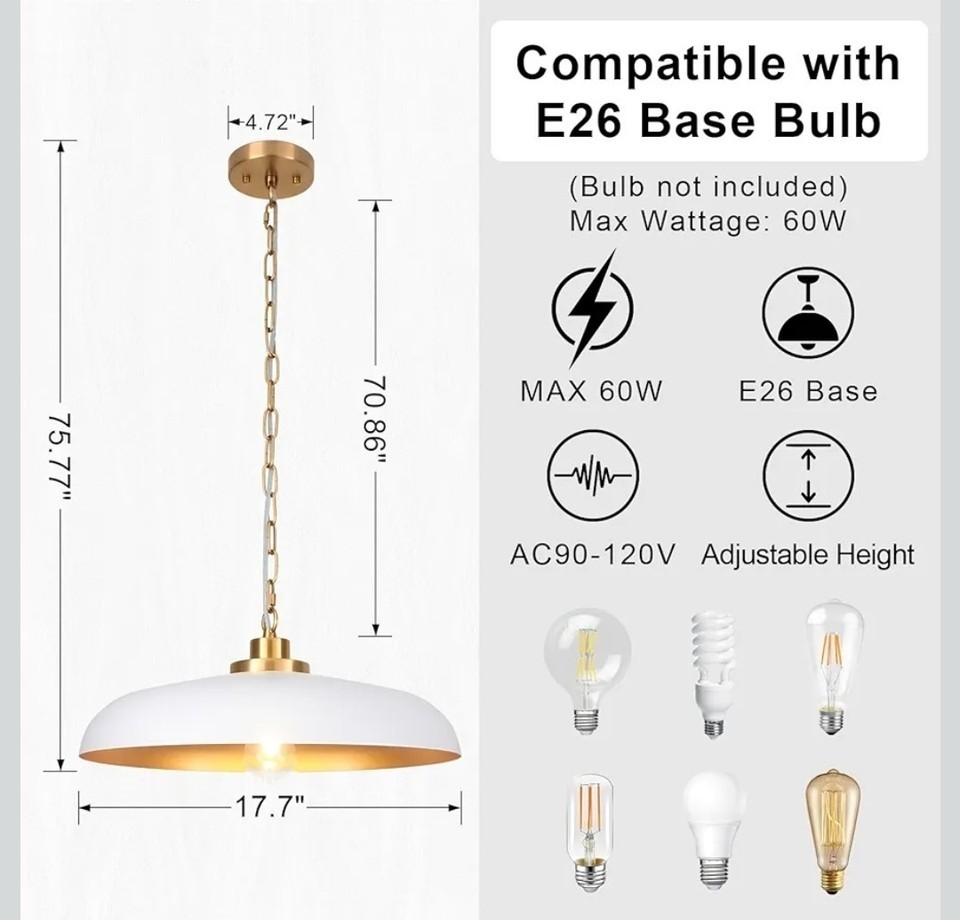 Nzzdyi White and Gold Pendant Modern Farmhouse Light for Kitchen/Dining Room