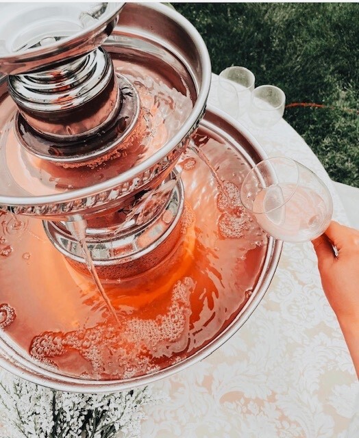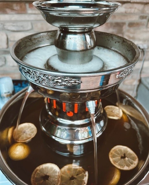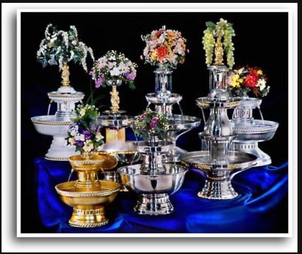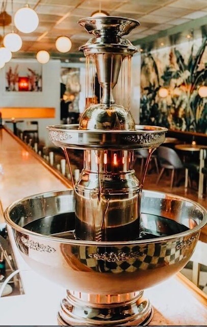 One of our signature handcrafted stainless steel fountains. They are designed to encompass superior craftsmanship and timeless appeal. This fountain can create a unique self-serving beverage station - which can alleviate the pressure on bar staff or create a stations specifically for a signature drink at cocktail hour, happy hour, location for a transitioning space, or a place created just for the kids. All of our fountains serve alcoholic and non-alcoholic beverages: punch, champagne, sweet tea, lemonade and cocktails. In fact, fi you can mix ti behind the bar, you can pour it into a fountain!