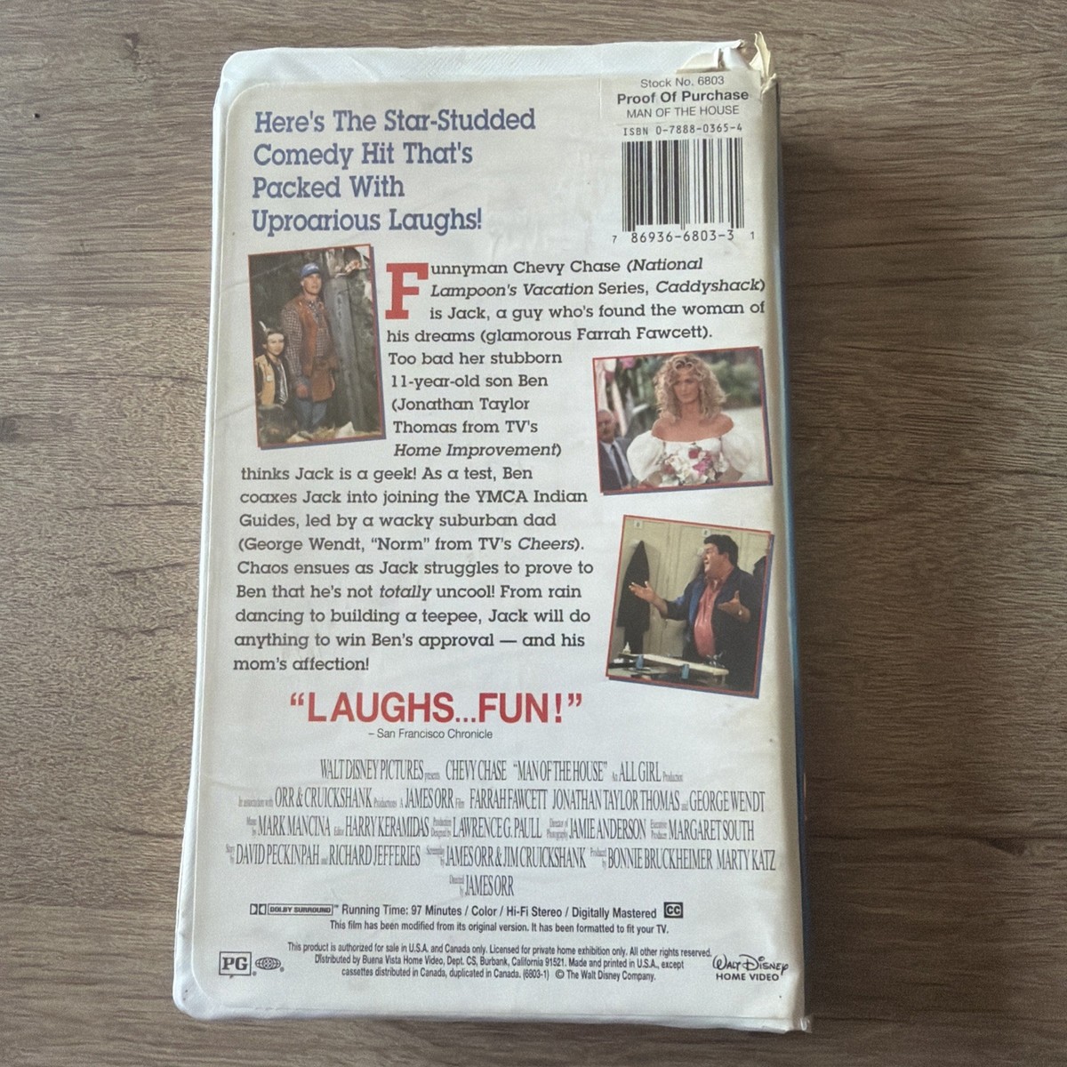 The product is a vintage Disney VHS tape of the 1996 family comedy movie "Man of the House" starring Chevy Chase. The video is formatted in English and follows the NTSC signal standard. Directed by James Orr, this PG-rated film is set in a family-friendly genre, fitting for kids and parents alike. The clamshell edition adds to the nostalgic charm of this 90s classic, making it a sought-after collectible for fans of Chevy Chase and family-friendly movies.