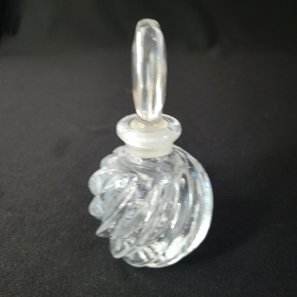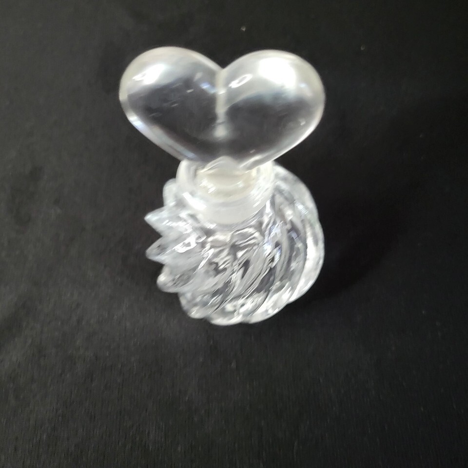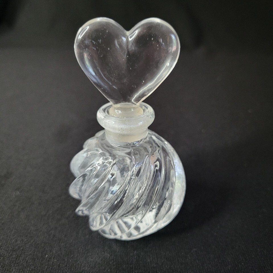 VTG Crystal Perfume Bottle with Heart Stopper 18% Swirl Glass Art Deco Regency