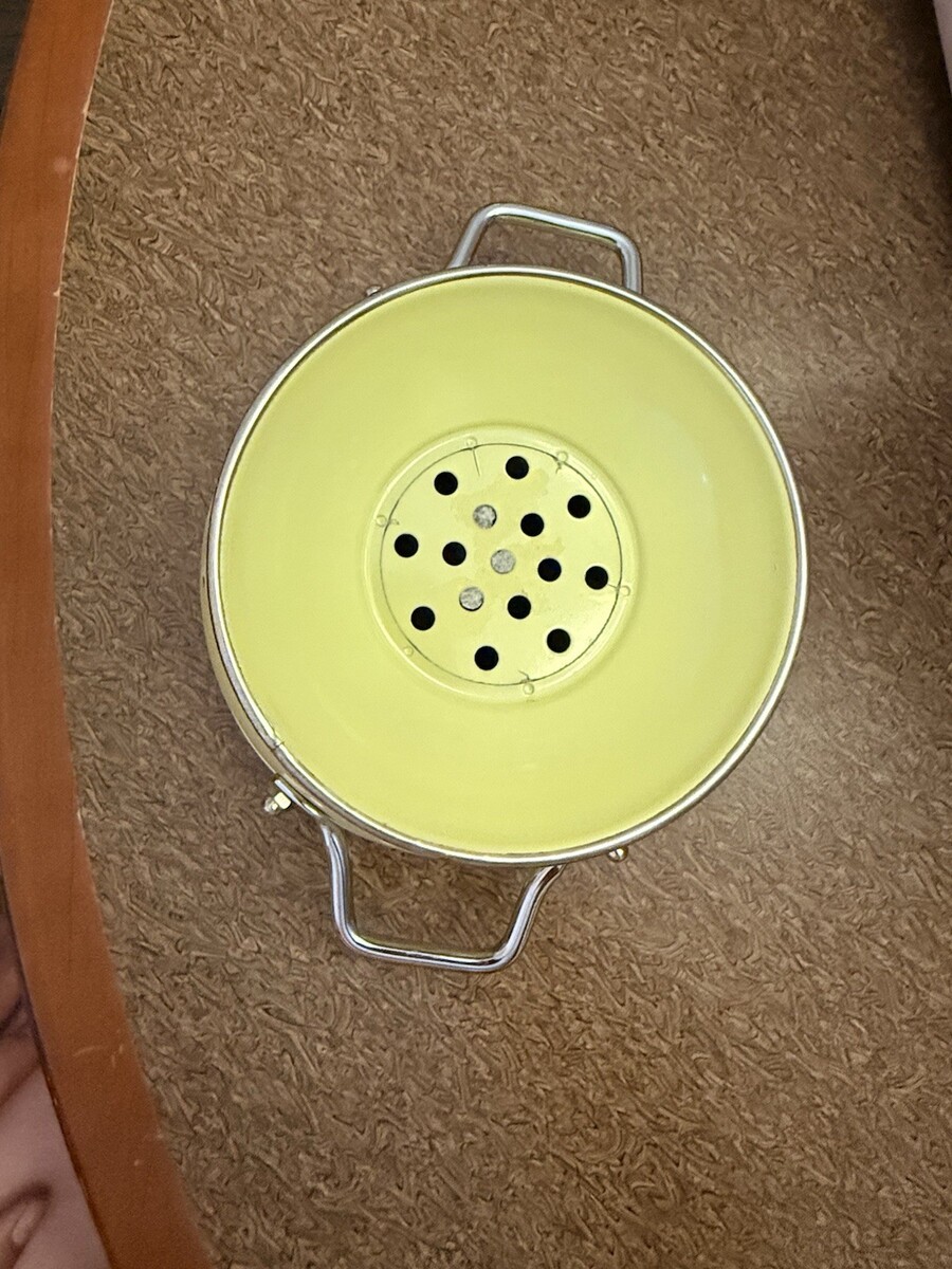 Colander Coated Enamel Pedasal Yellow Mini Approx 6” Handles