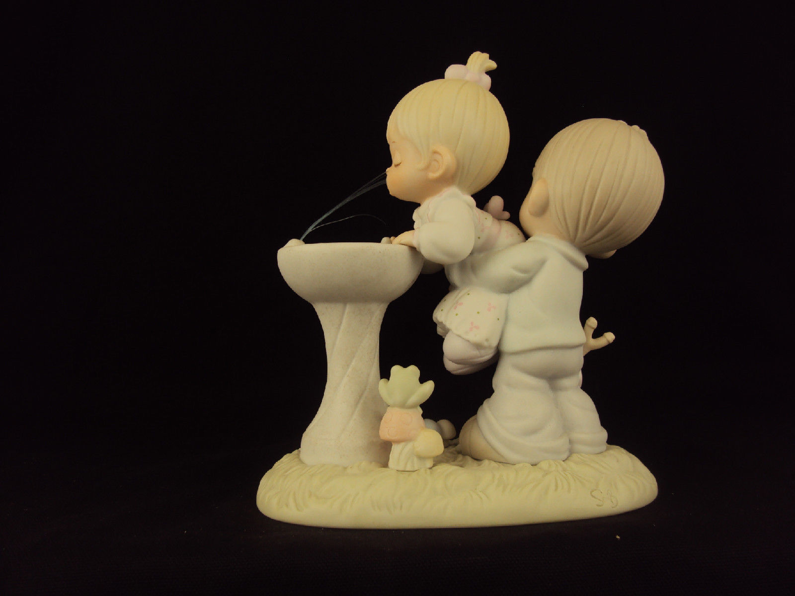 If you are new to the charming world of Precious Moments, you'll notice lots of intricate detail in this and every Precious Moments piece as indicated in the photos above. We take several pictures of each figurine from as many angles as possible and do our photography with professional lighting and equipment to bring out as much detail as possible. Even so, these charming pieces of art must be seen and displayed to be fully appreciated.