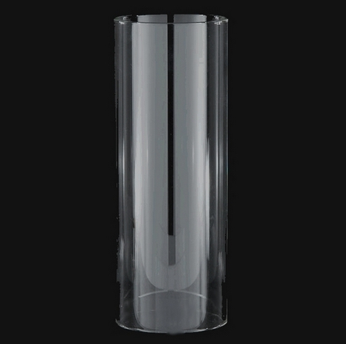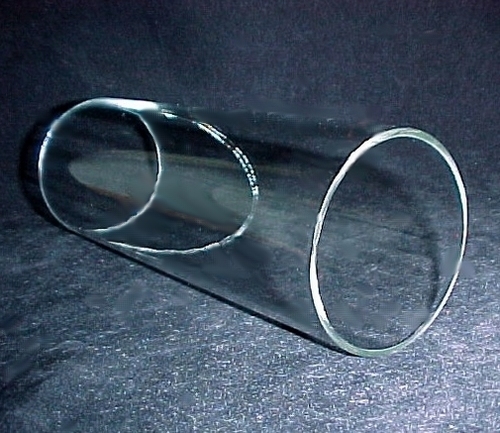 Clear glass, straight hollow tube, flame polished rims, open on both ends, No side holes.
