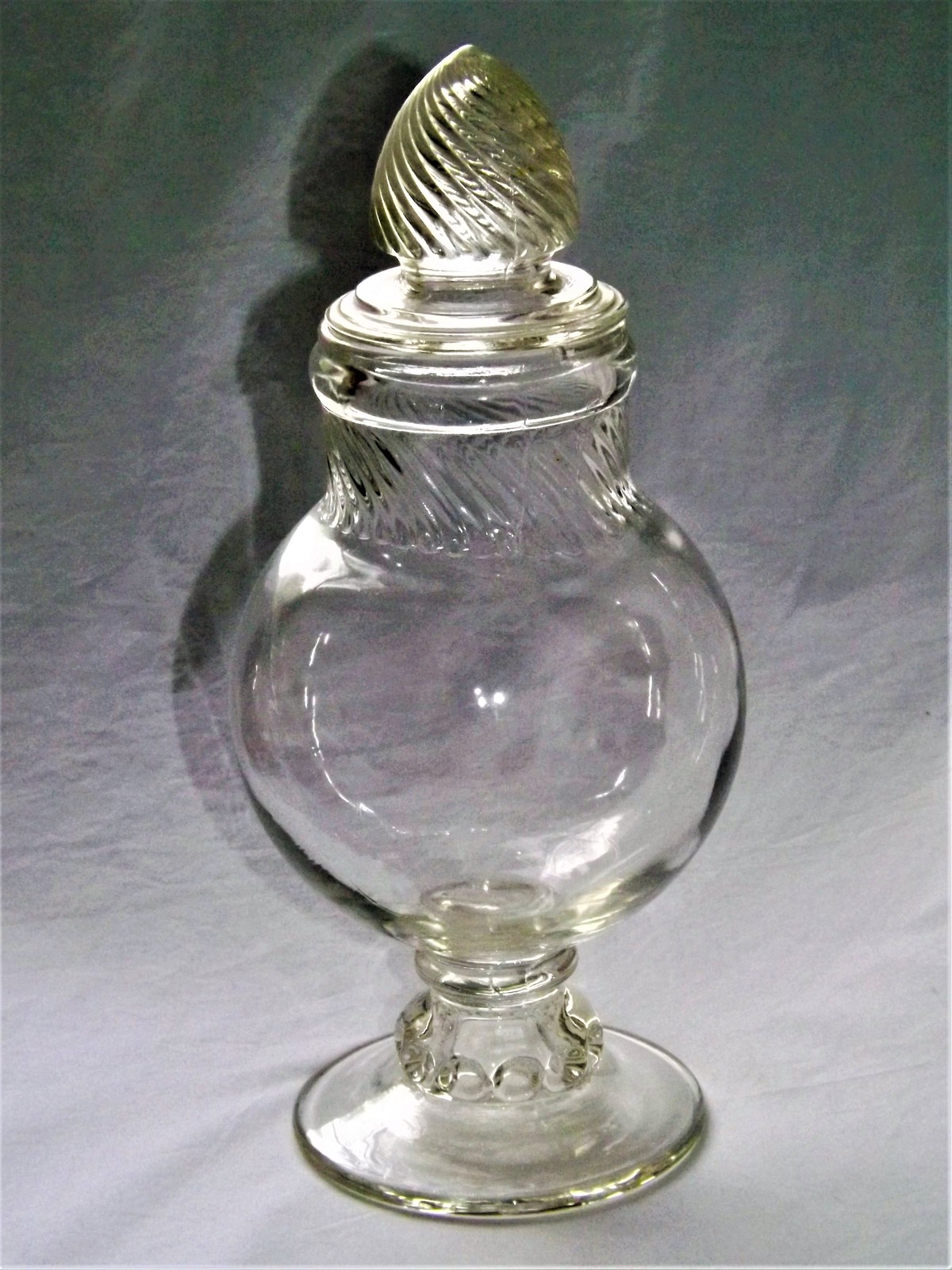 1900 Drugstore Apothecary Candy Jar Clear Glass w/Swirl Bullet Lid 11"