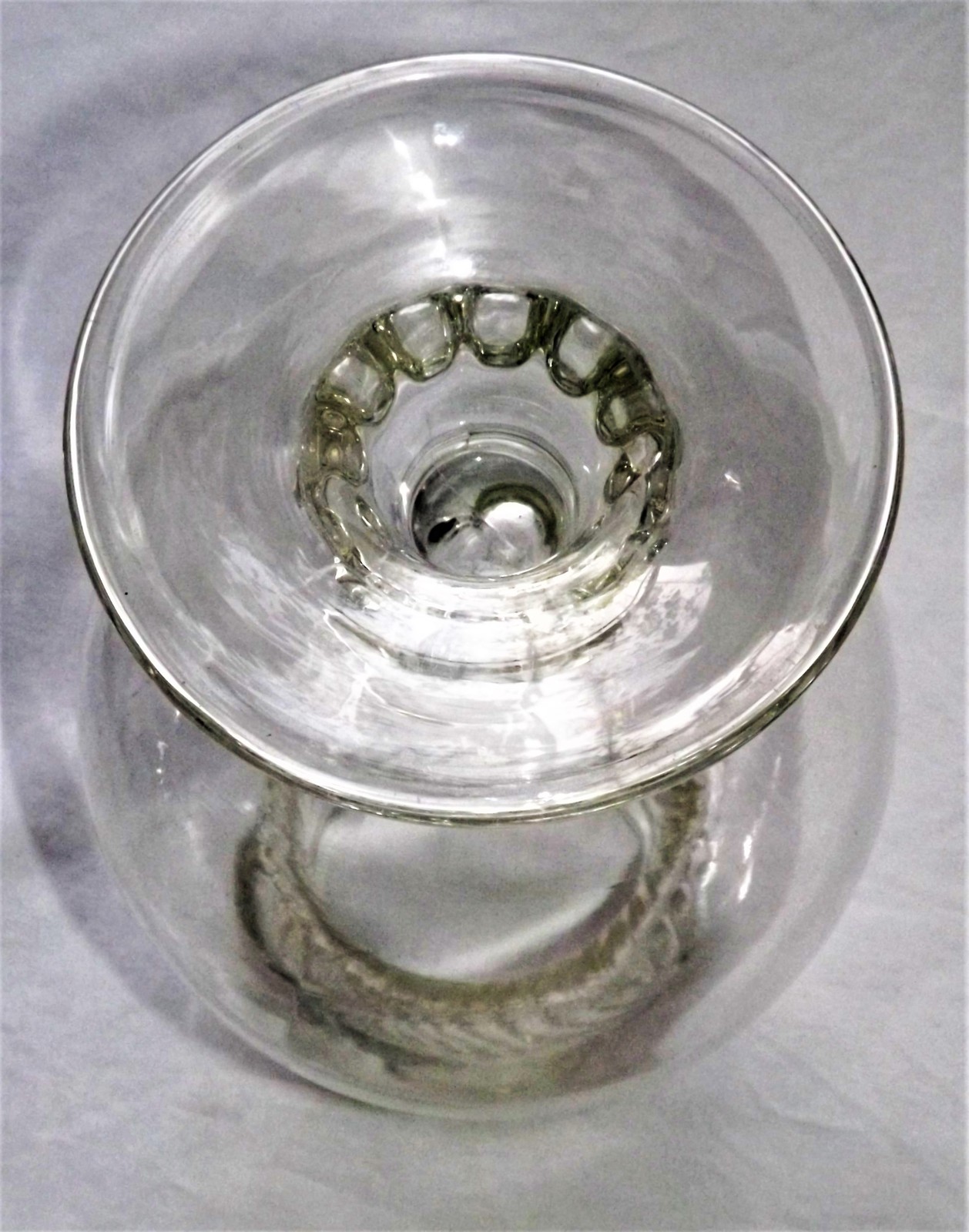 A 1900 Drugstore Apothecary/Candy Jar with the Original Swirl Bullet Lid. This piece is made of clear glass and measures 11" high. There is a very small blemish to the inner rim of the jar (please see the last photograph of this listing. The lid is in excellent condition.