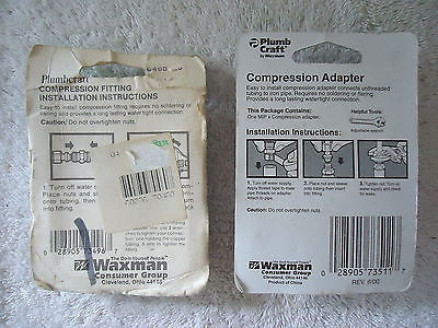Lot Of 2 " NIP " NOS " Plumbcraft Compression Items,1,Male Adapter,1,Fitting Nut