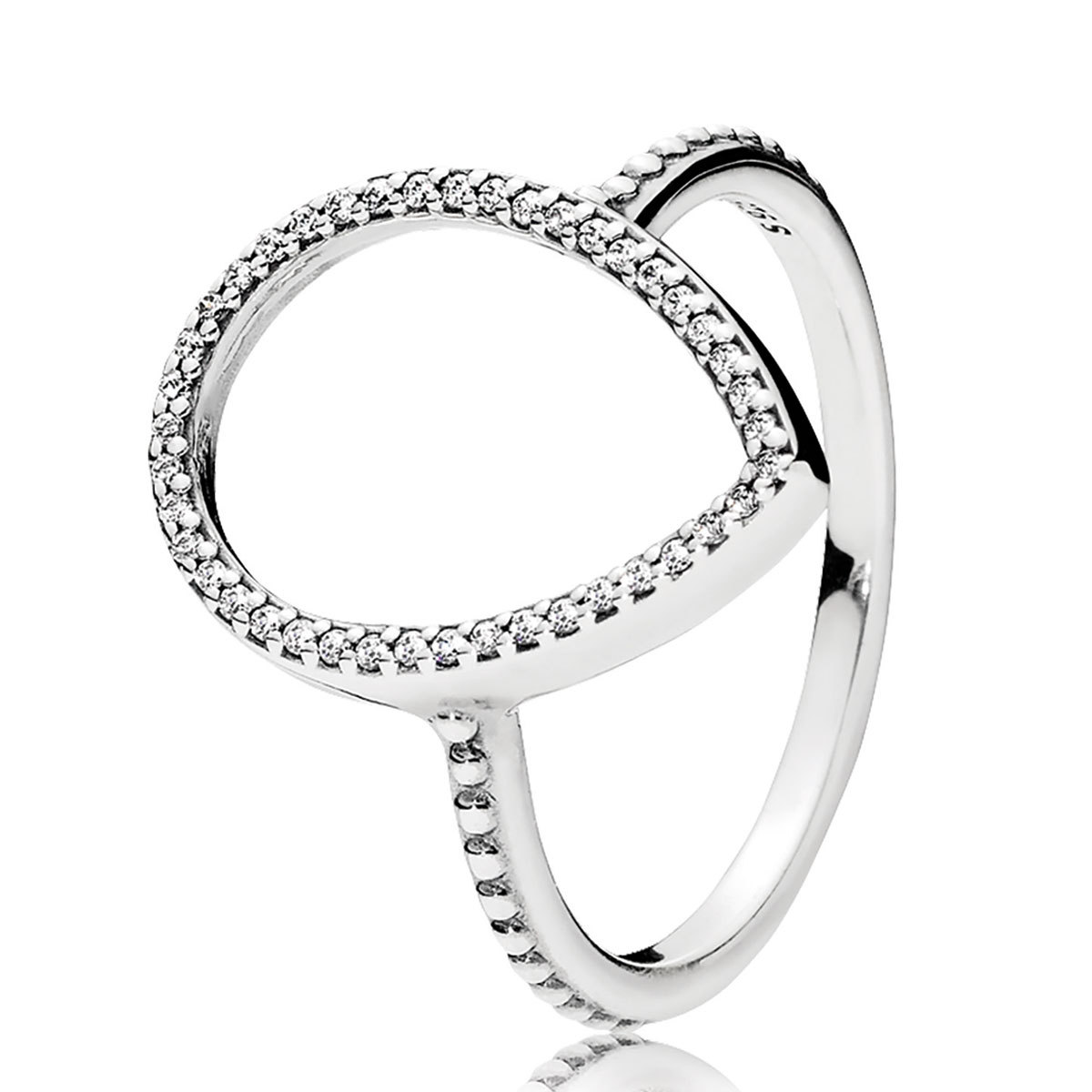 A contemporary take on the classic teardrop shape, this sterling silver silhouette ring from the Autumn 2017 collection is the epitome of beauty and simplicity. Its delicate geometric frame is dusted with bright cubic zirconia stones for extra vibrancy.
