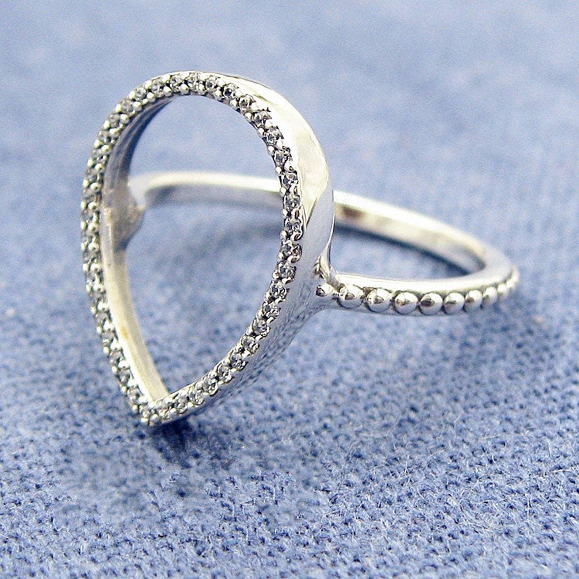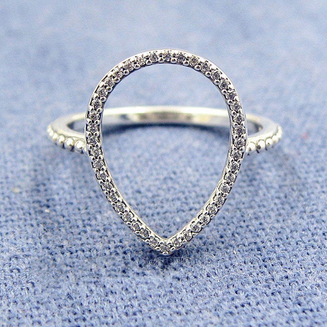 925 Sterling Silver Teardrop Silhouette with Clear Zirconia Ring