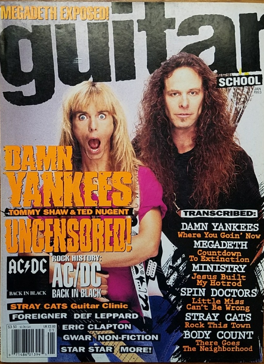 GUITAR School January 1993: Tommy Shaw Ted Nugent AC/DC Stray Cats Def Leppard