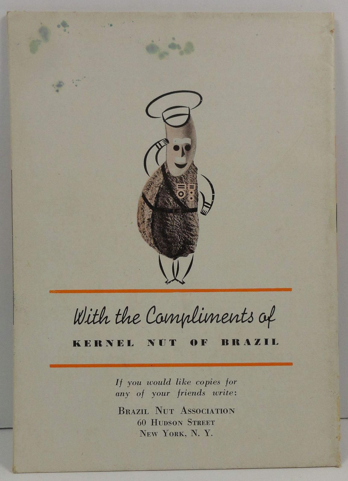 The stapled binding is in good condition, the first page and cover have bug damage on the upper corner tip. The front has a small loss on the bottom edge and bug damage along the spine. The back is stained. Acceptable. Paperback.