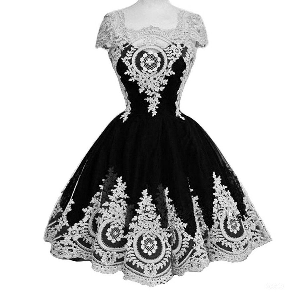 Kivary Vintage Short Little Black and White Lace Corset Lolita Prom Homecoming D