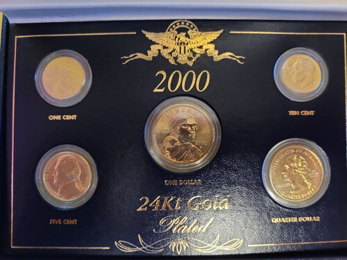 2000 New Hampshire State Quarters U.S. Mint BU Coins 24K GOLD PLATED (Quantity 10). All 10 coins have been entirely plated with 24 Karat Gold by the Merrick Mint using the highest quality production process. The result is an everlasting 24KT Gold Plated coin collectible of ultra-high quality that is #1 in the industry. Each coin is genuine Legal Tender of the United States. You get Full Color 2-sided Certificate of Authenticity to guarantee that your coins are authentic and recognized by every monetary authority around the world, assuring its Collector Edition status. Mint Marks are all random. For the Low Price of $19.95, you get all 10 State Quarters Gilded in Genuine 24 Karat Gold...a remarkable value!