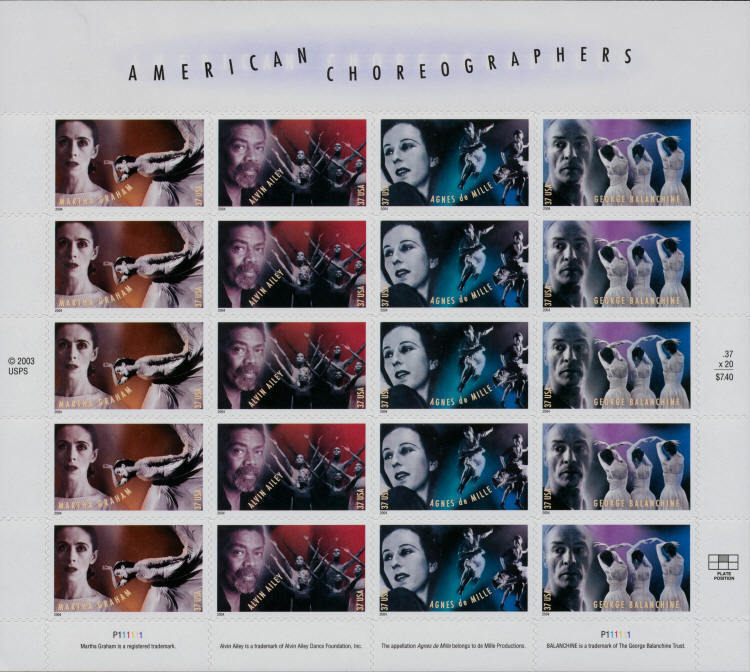 2004 37c American Choreographers, Sheet of 20 Scott 3840-43 Mint F/VF NH