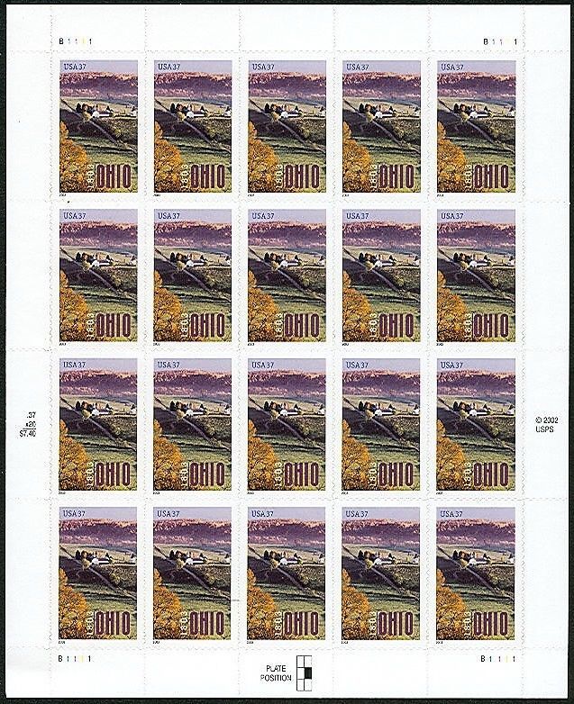 2003 37c Ohio Statehood, 200th Anniversary, Sheet of 20 Scott 3773 Mint F/VF NH