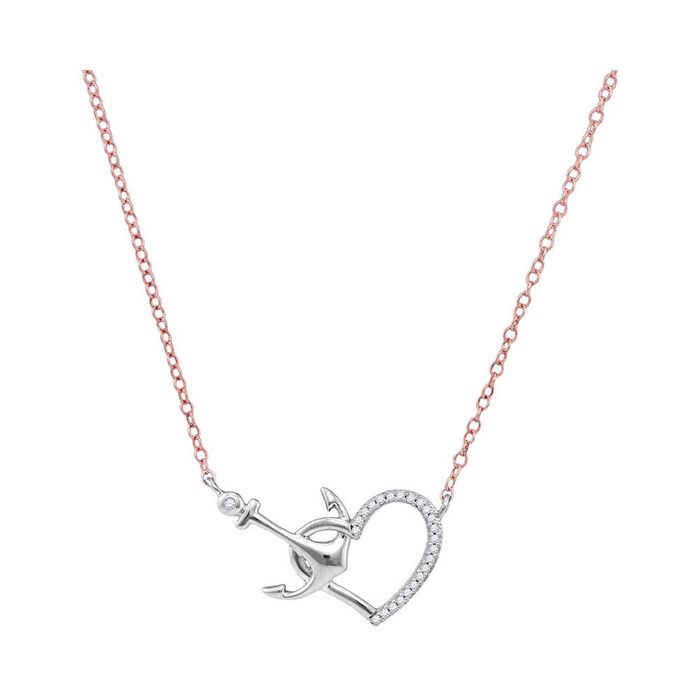 10kt White Gold Womens Round Diamond Heart Anchor Pendant Necklace 1/12 Cttw