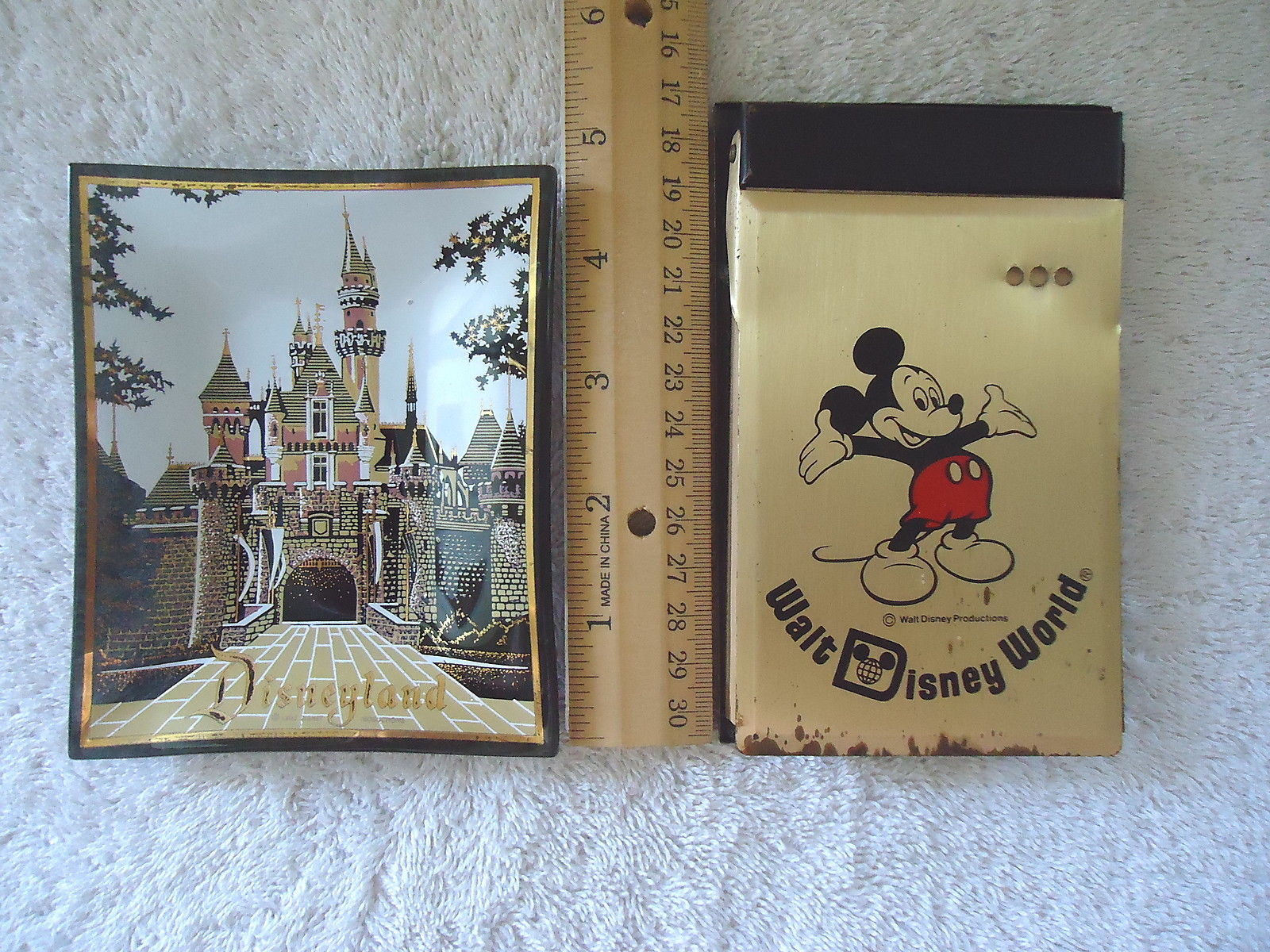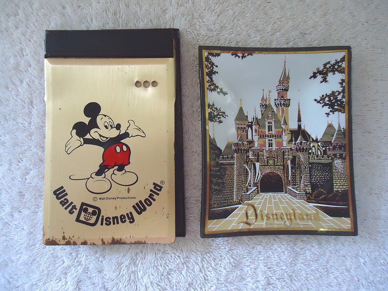 Here is a Vintage Lot Of 2 Disney Items,1,Walt Disney World Metal Note Pad Holder,1,Disneyland Ash Tray / Candy Dish " GREAT COLLECTIBLE SET ".This is a must for any collector,or decorator wanting that vintage retro look.If you have any concerns or questions about this item(s) please ask before bidding / purchasing this item(s).Thank You.-(PC28)