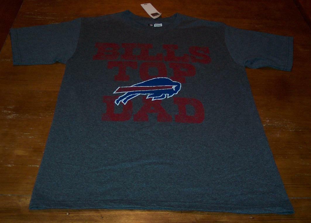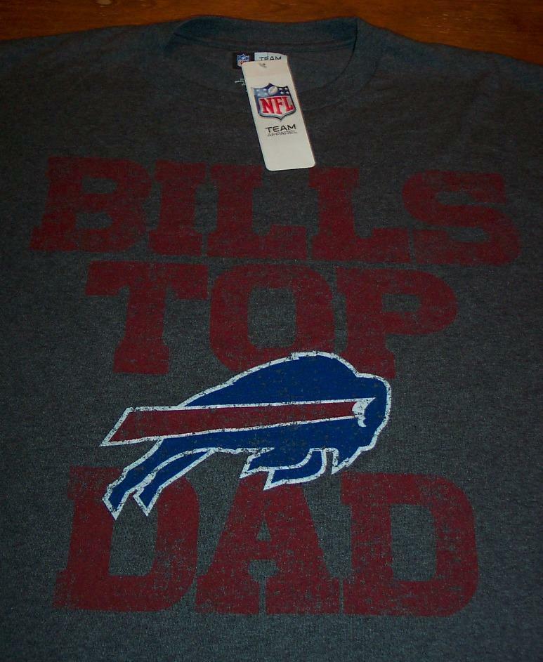 This is a BUFFALO BILLS TOP DAD NFL FOOTBALL T-Shirt. It is a size MEDIUM, and it is NEW with the tag. It is 21 inches from armpit to armpit and 30 inches in length. It is an official NFL TEAM APPAREL Shirt. The print is made to look vintage. Combine auctions to save on shipping. Winning bidder to e-mail within 3-days and payment to be received within 10-days. D7AF