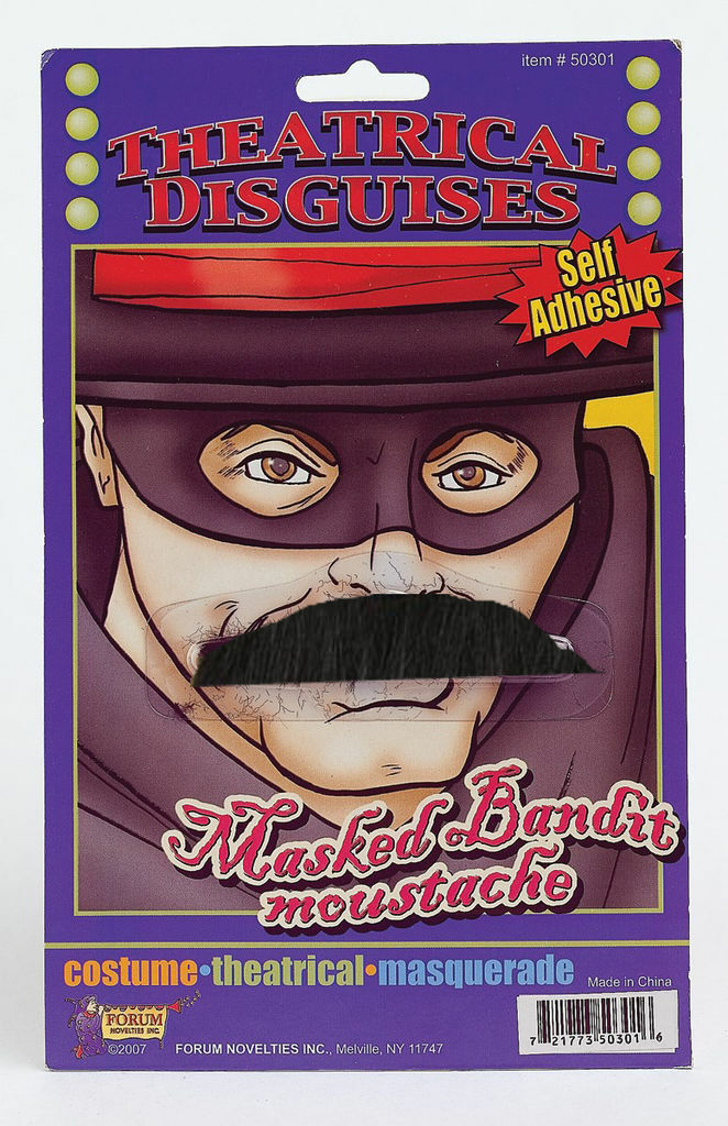FORUM SELF ADHESIVE THEATRICAL MASKED BANDIT BLACK MOUSTACHE 50301