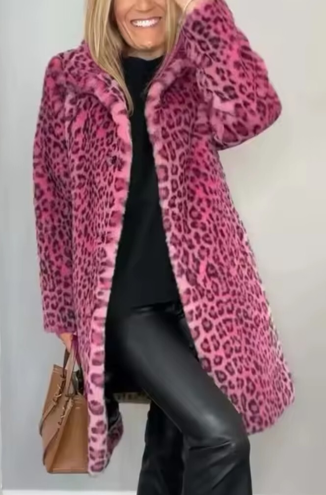 Pink Spotted Leopard Warm Soft Fleece Autumn and Spring Mid Length Fashion Coat