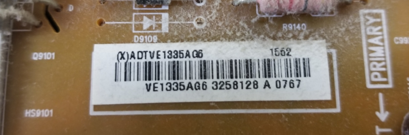 Important Message: PLEASE NOTE: There is more than one different power supply used in this model. Please confirm that ADTVG1335XG7 can be found printed on the barcode sticker on the original power supply board in your TV before ordering.