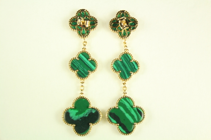 Triple Hanging Malachite Motif Gold Plated Earrings