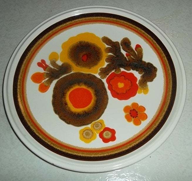 This plate has a retro 70's style, it is very hard pattern to find and is a rare find!