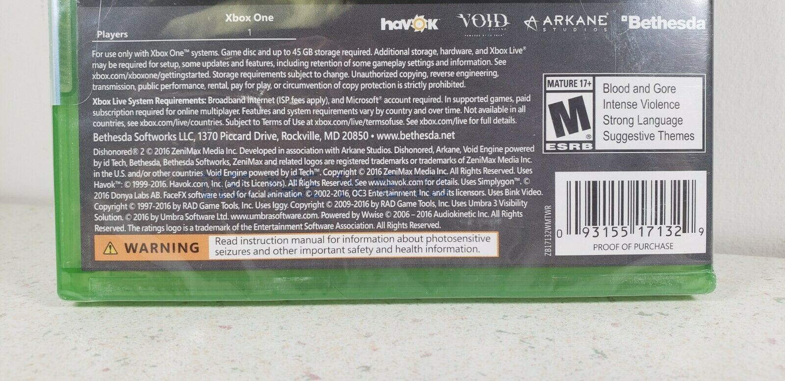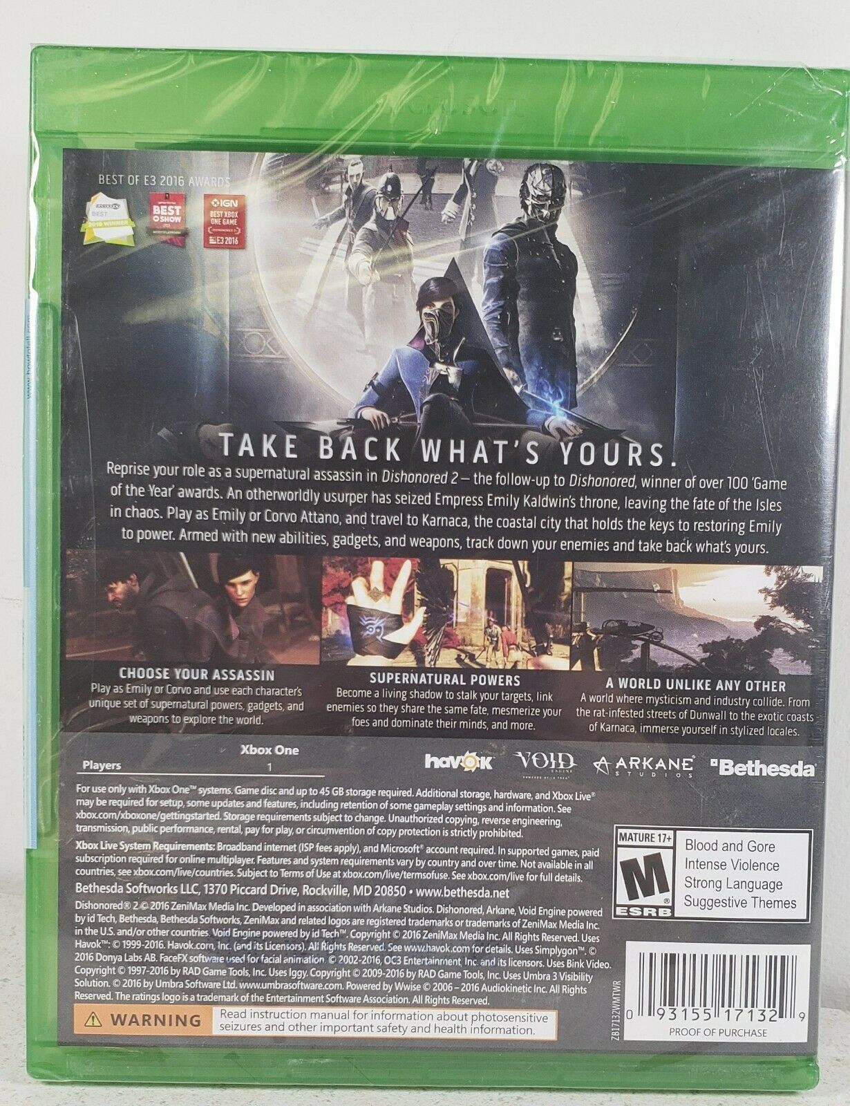 Dishonored 2 Standard Edition Xbox One NEW Sealed