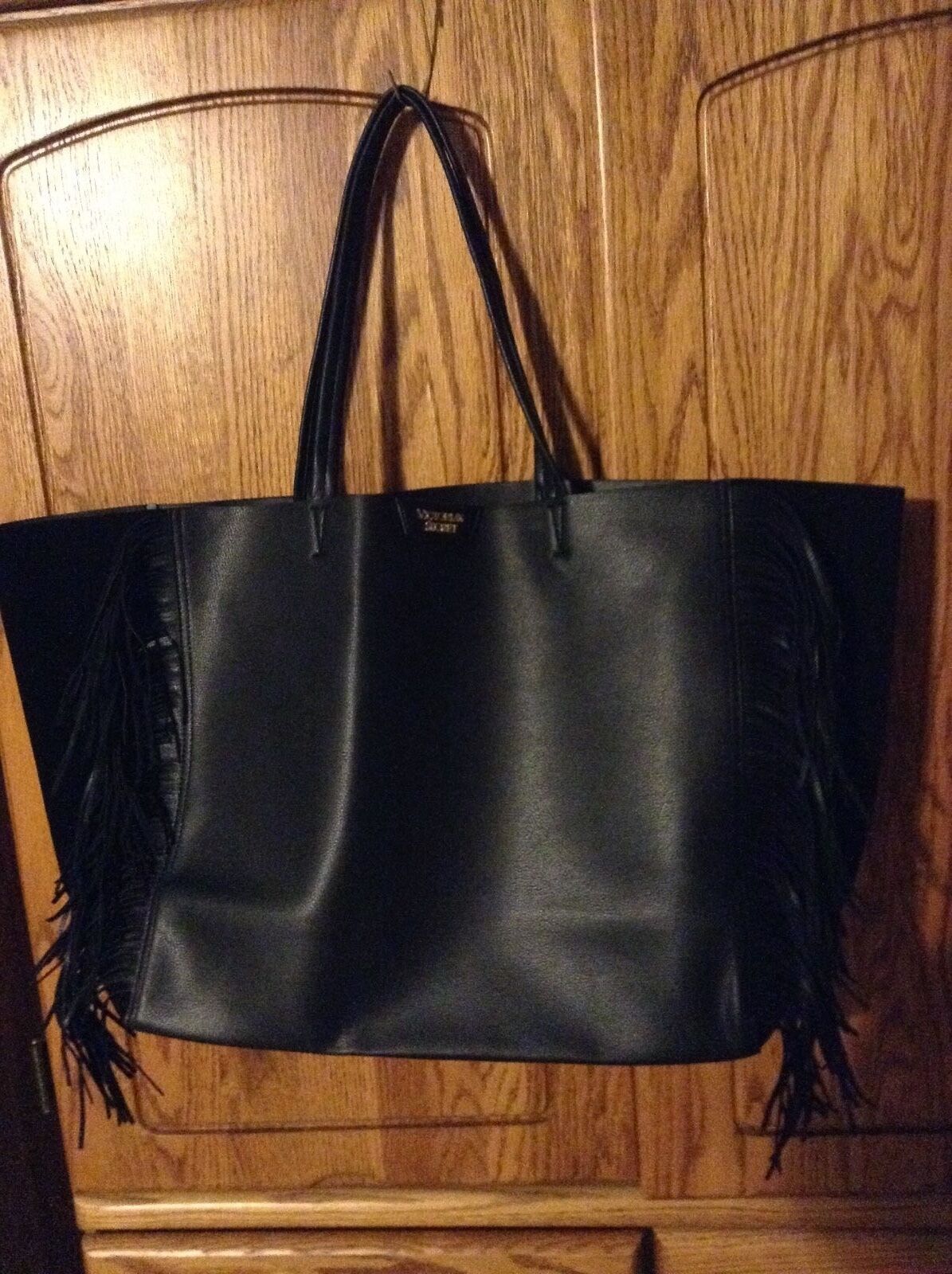Victoria's Secret Fringe Faux Leather Tote Bag Black New