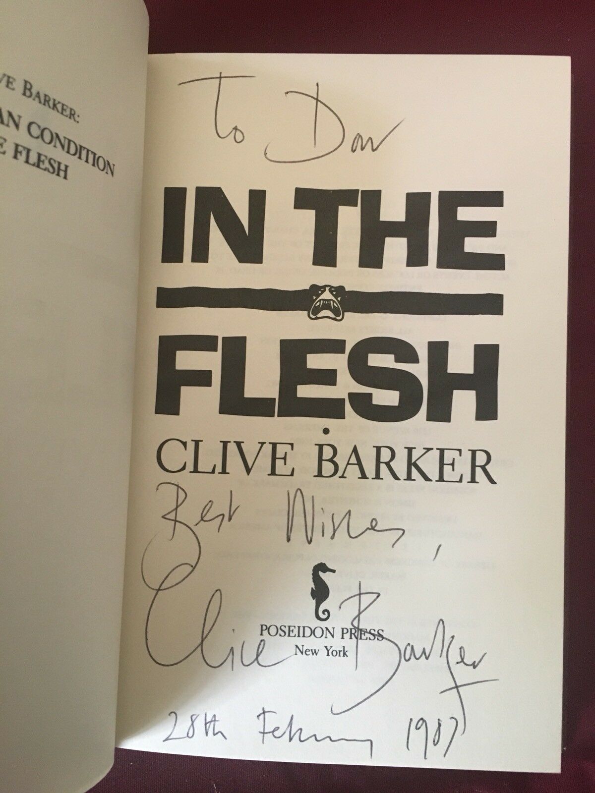 IN THE FLESH - FIRST AMERICAN EDITION SIGNED BY CLIVE BARKER