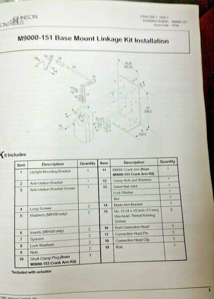 M9000-151 BASE MOUNT LINKAGE KIT Johnson Controls NEW