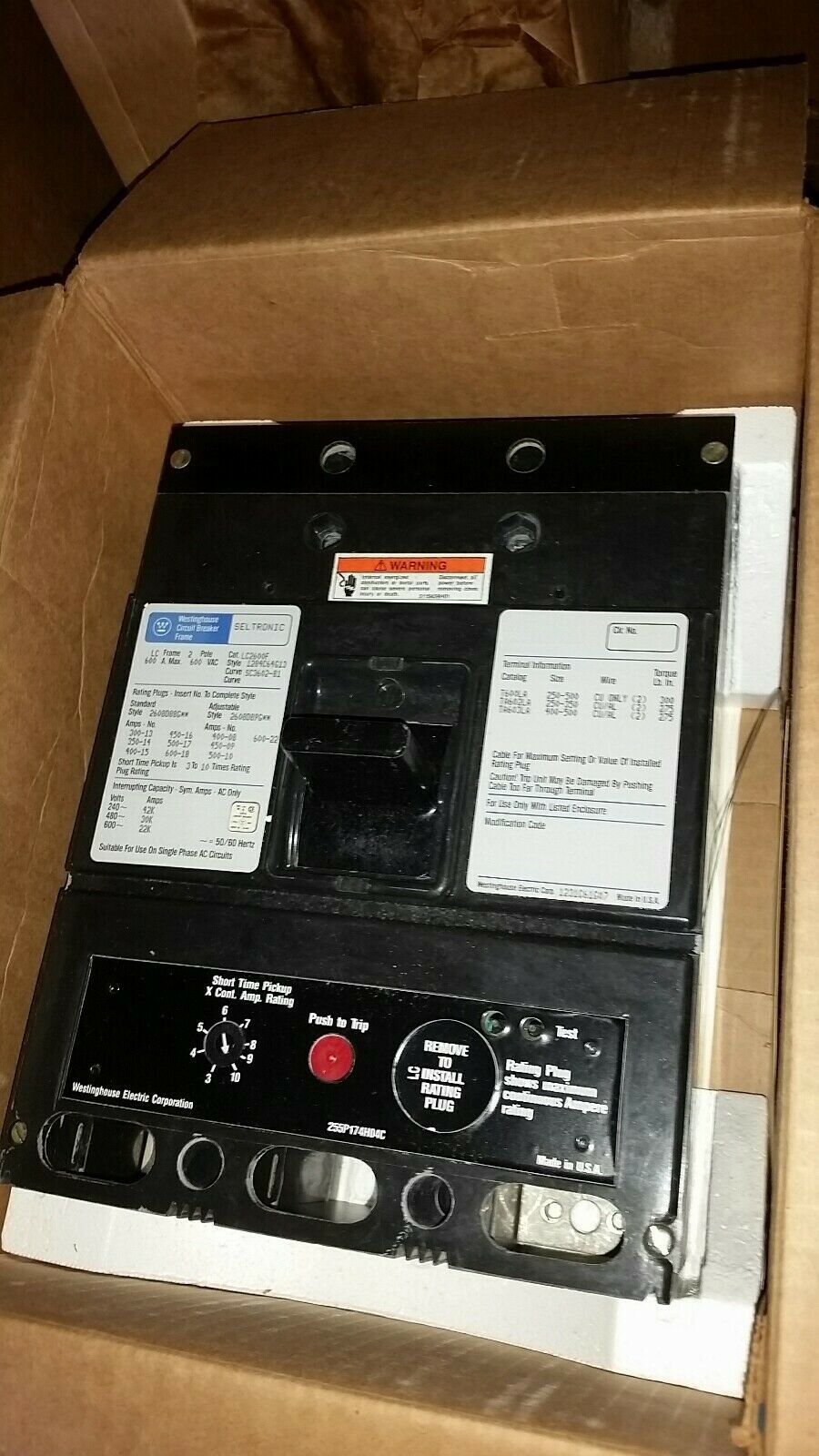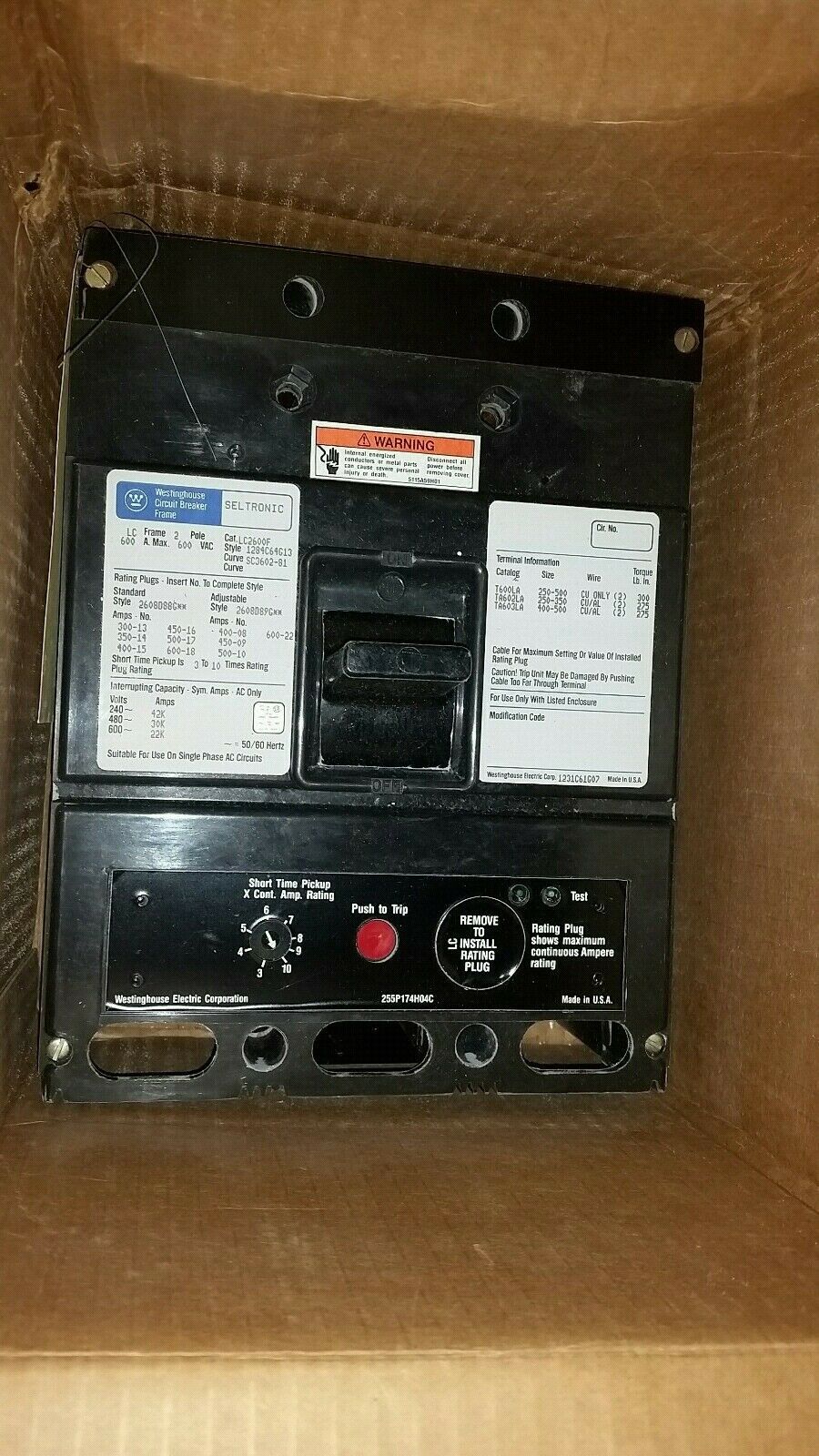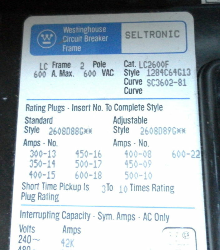 LC2600F WESTINGHOUSE 600 AMP 2 POLE 600VAC FRAME ONLY Onan 320-1366 NOS