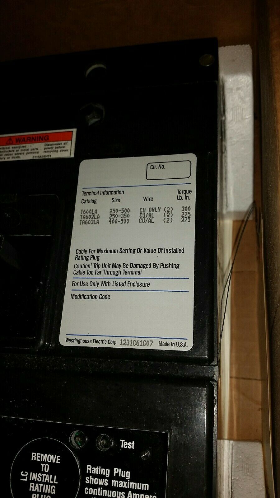 NO LUGS, NO RATING PLUG