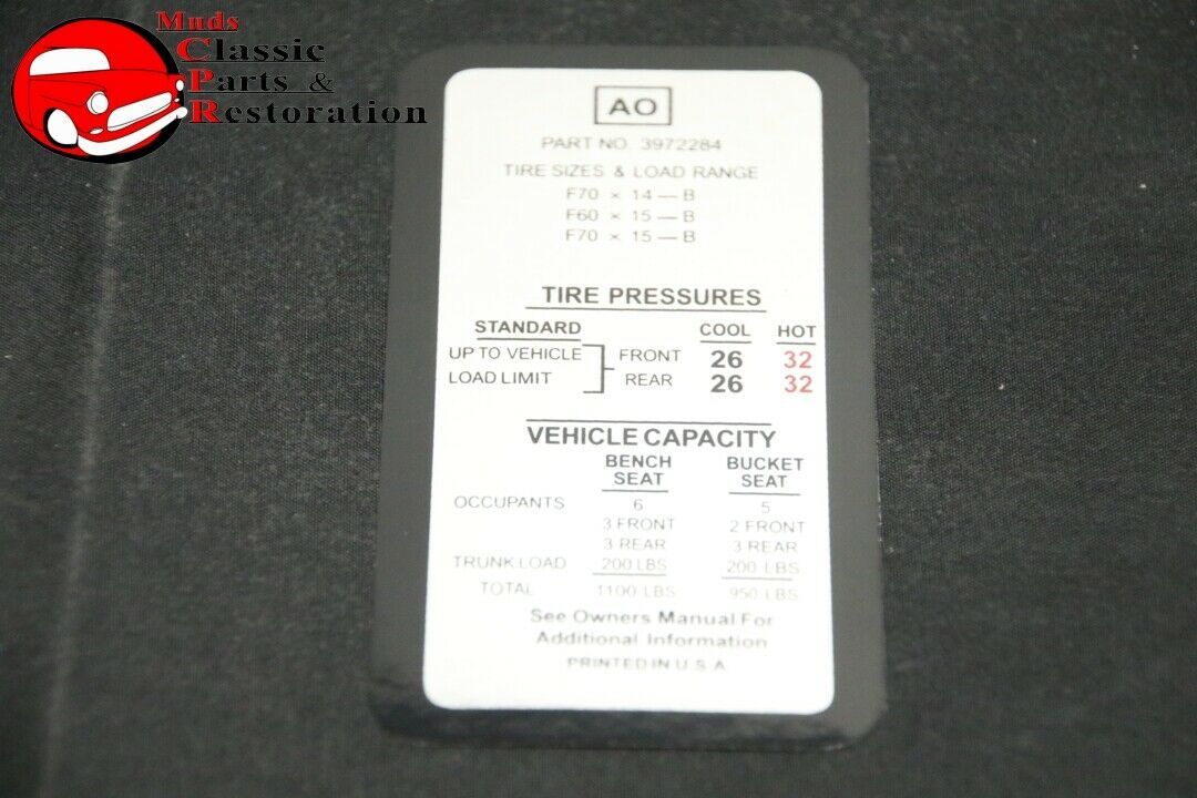 1970 Camaro Z28 Tire Pressure Decal F70x14 and 50 similar items