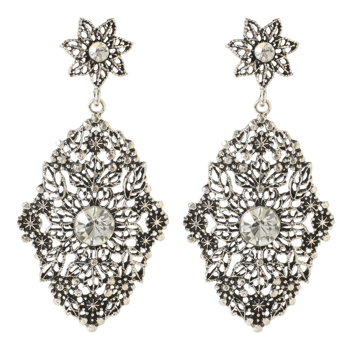 Amrita Singh Antique Silver Crystal Calypso Filagree Earrings ERC 52 NWT