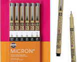 Includes 6 black ink Pigma Micron pens in point sizes 005 (0.20mm), 01 (0.25mm), 02 (0.30mm), 03 (0.35mm), 05 (0.45mm), and 08 (0.50mm)