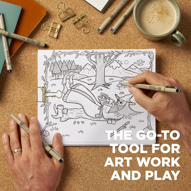 Precise archival pens create fade resistant, waterproof, bleed free marks for drawing, artwork, journaling, and more