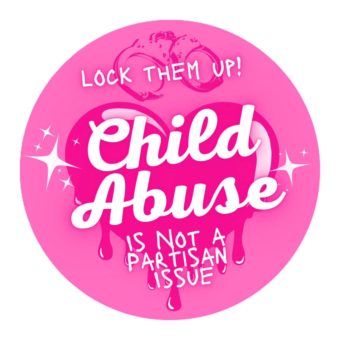 3 inch circle, high quality vinyl decal. Designed by me! "Child abuse is not a partisan issue!" Embrace your feminine rage era with this pink, girly, heart sticker. Shipping is $1.50 per order no matter how many you buy!